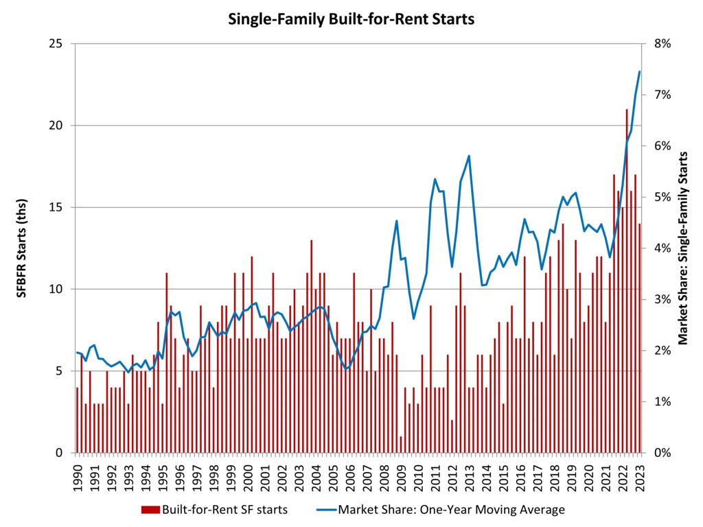 "The SFBFR market is a source of inventory amid challenges over housing affordability and downpayment requirements in the for-sale market, particularly during a period when a growing number of people want more space and a single-family structure. Single-family built-for-rent construction differs in terms of structural characteristics compared to other newly-built single-family homes, particularly with respect to home size."